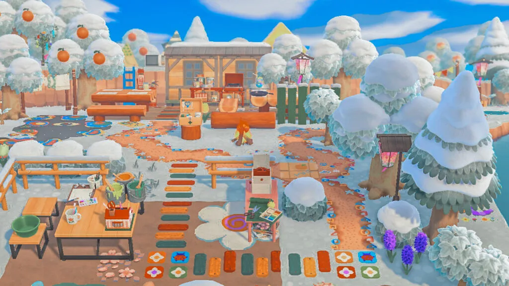 Celebrate your snowy winter with some vibrant colors! This idea will take your ACNH experience to the next level.