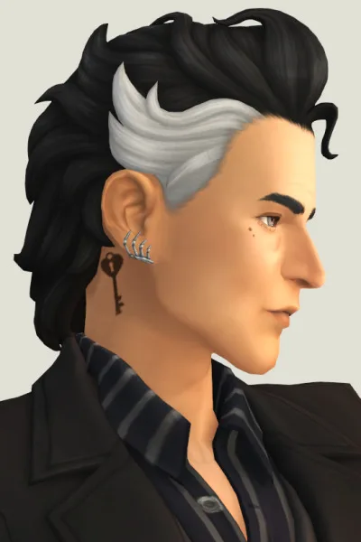 These sideburns instantly add attitude, framing your sim’s face like tiny wings. The black and white streaks pop without needing a full haircut.