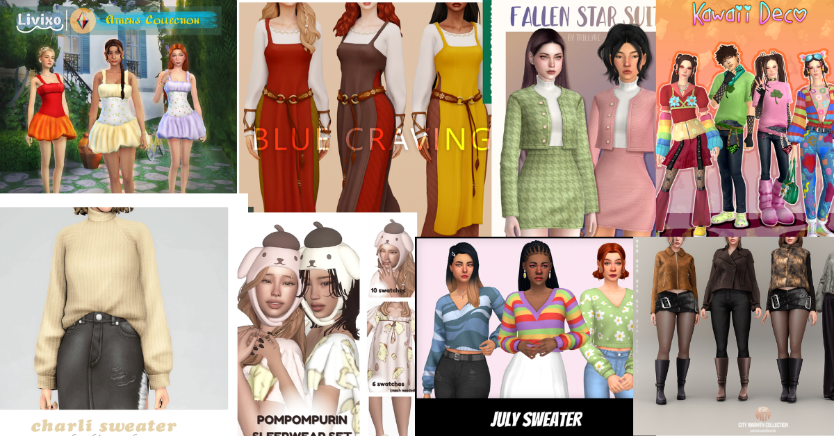 I’ve been playing around with some fresh CC lately, and these new drops seriously upgraded my Sims’ wardrobes. Each one brings a totally different vibe, some soft and dreamy, others bold and full of attitude.