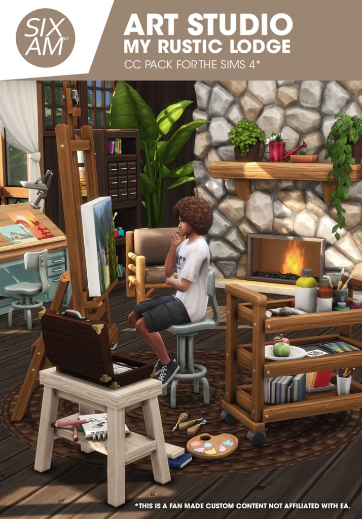 This office set made me want to paint immediately. The desks and bookshelves feel functional, but the rustic vibe turns the space into an art studio for my Sims.
