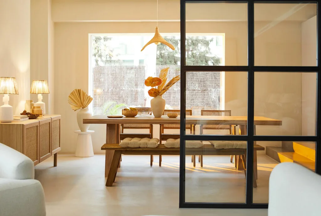 I fell for this dining set instantly. One side with chairs, the other with a bench, giving me the perfect mix of casual and stylish.