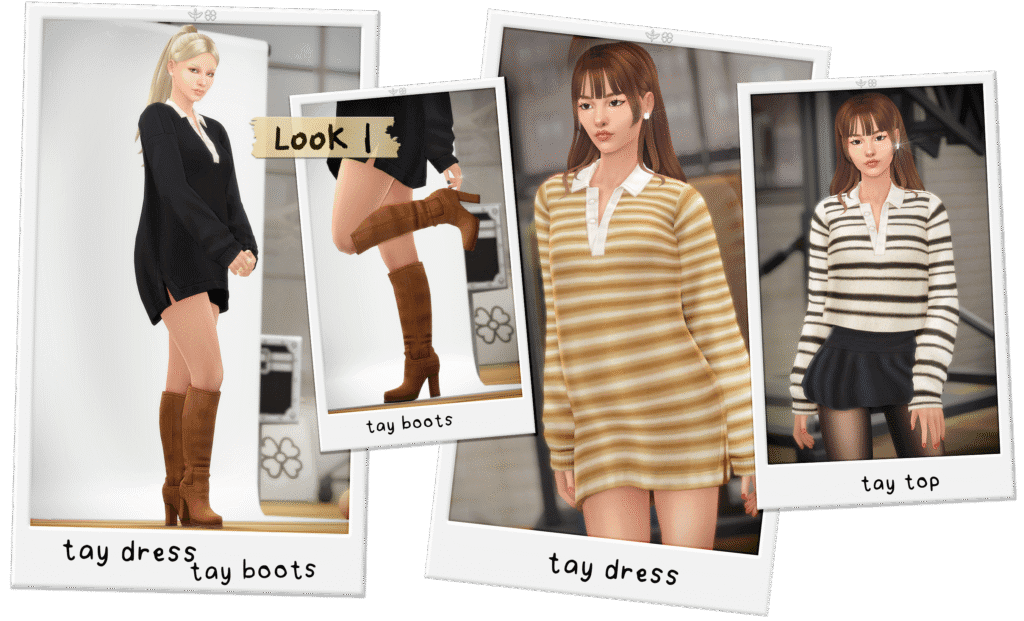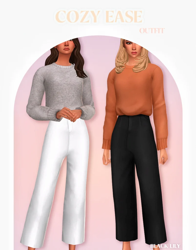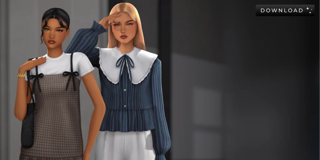 The mix-and-match options are endless; the dress looks adorable with Mary Janes, while the top and pants make a perfect casual combo. Everything fits so smoothly that it feels like real fashion made for Sims.