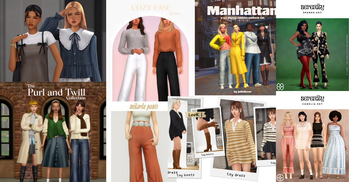 These creators know how to blend textures, colors, and moods so effortlessly that my Sims end up with wardrobes better than mine. From flirty coquette dresses to sleek city fits, each pack brings its own kind of charm.