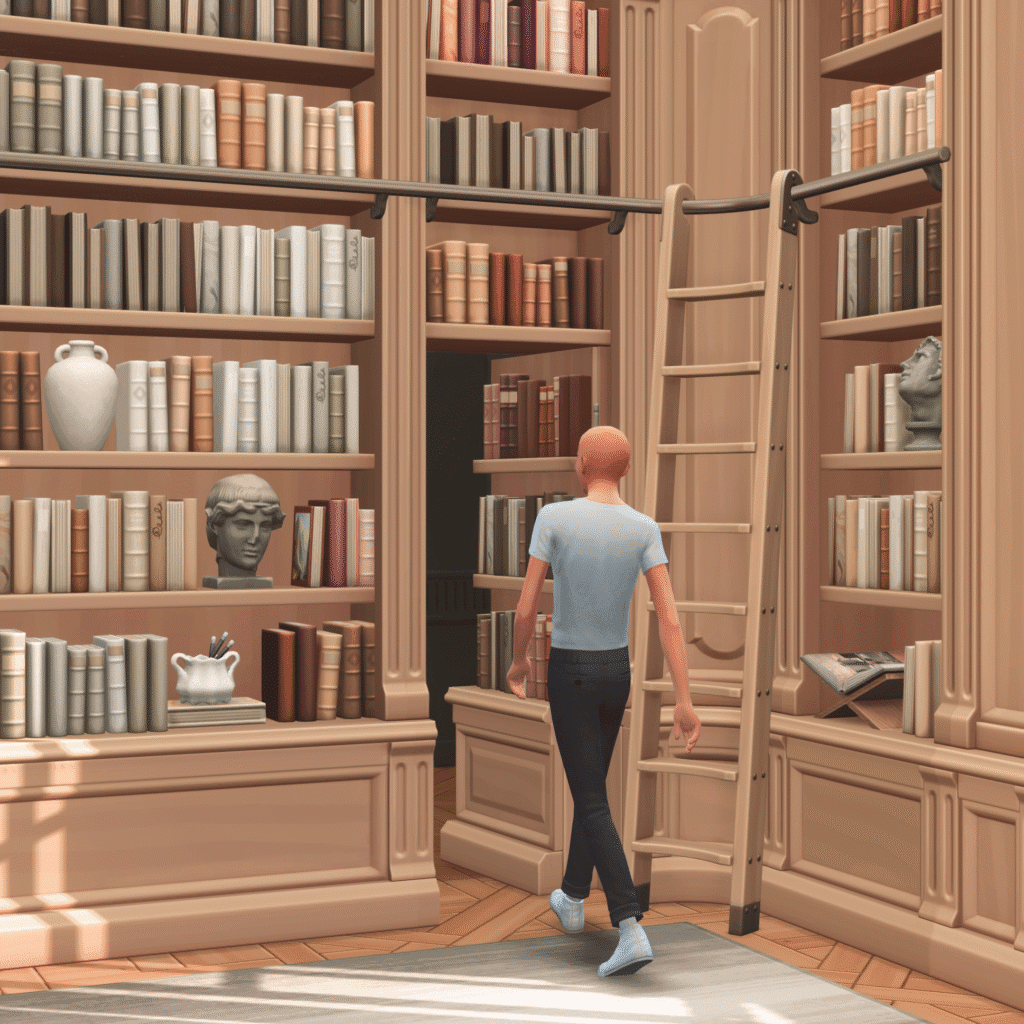 I added these bookcases everywhere and suddenly my Sim’s “office” felt grand. Tall, elegant shelving makes it easy to create a layered, lived-in feel.