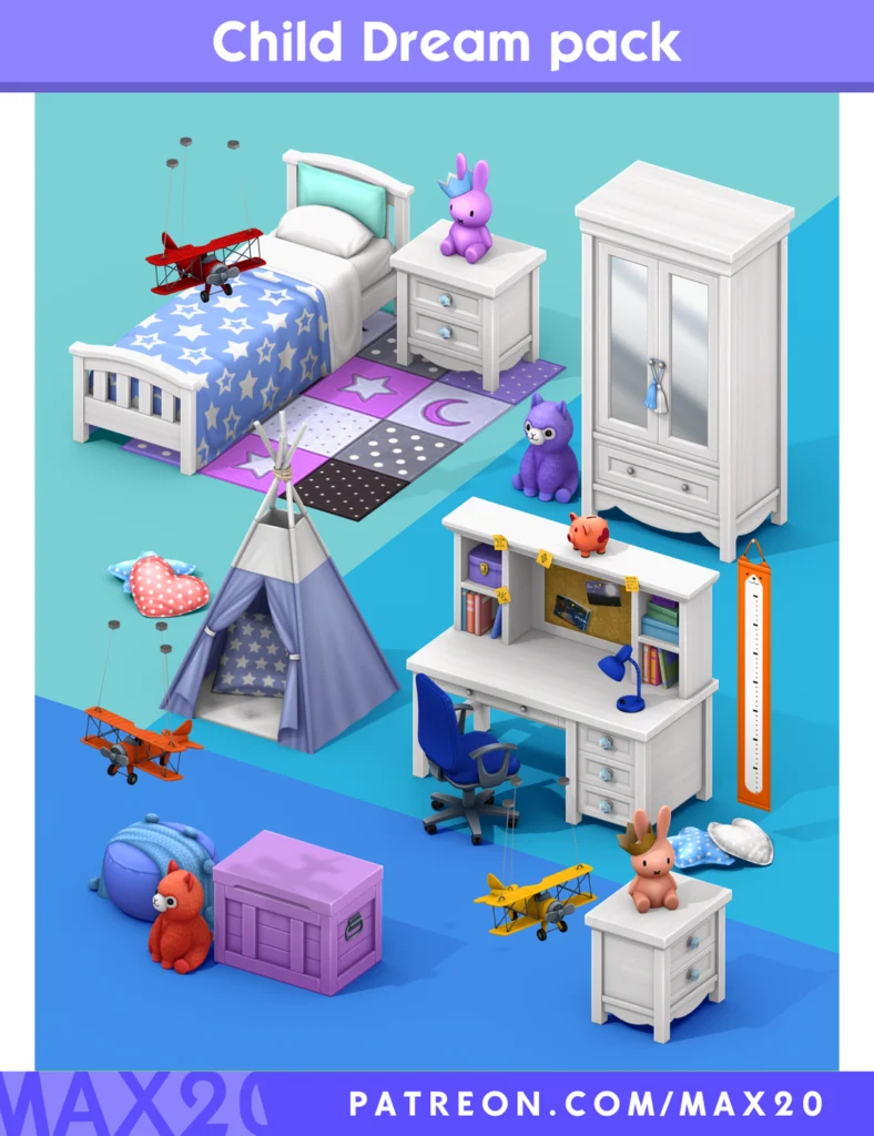 Every small detail adds realism and charm, turning a kid’s room into somewhere a Sim would actually spend hours playing or reading, not just sleep.