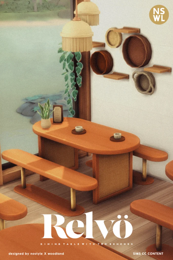𝚁𝚎𝚕𝚟ö 𝙳𝚒𝚗𝚒𝚗𝚐 𝚝𝚊𝚋𝚕𝚎 𝚠𝚒𝚝𝚑 𝚝𝚠𝚘 𝚋𝚎𝚗𝚌𝚑𝚎𝚜 Furniture CC by ɴᴏ sᴛʏʟᴇ x ᴡ ᴏ ᴏ ᴅ ʟ ᴀ ɴ ᴅ