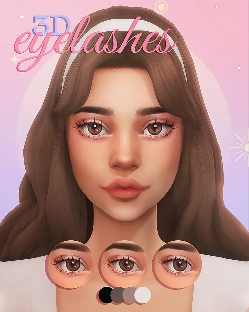 These lashes deliver a bold, full look in ten distinct colors. The density and definition help frame your Sim’s eyes without needing heavy eyeliner.