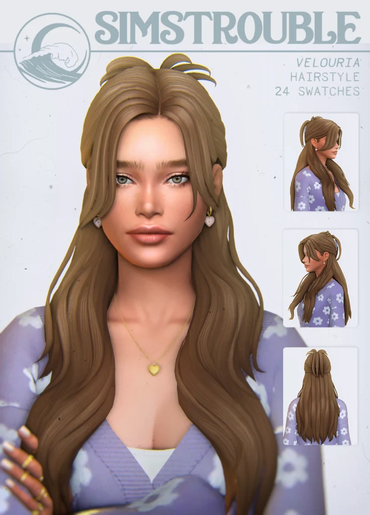 Melissa Hair caught my eye right away with its deep side part and effortless wave. It gives off that classic glam energy, like your Sim spent hours styling it.